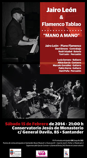 El arte en las manos del compositor Jairo León (Piano), presentará sus obras de carácter profundo y gran jondura junto a la agrupación Flamenco Tablao, en donde esta última hará gala del patrimonio inmaterial con baile, cante y toque. El equipo de artístas estará compuesto por Jairo León (Piano), Dani Simons (Contrabajo), Rodri Irizabal (Batería) y Tony León (Percusión), la formación de la agrupación Flamenco Tablao estará encabezada por Lucía Serrano (Bailaora), Alicia García (Cantaora), Marcelo González y Pablo Horna (Toque) y Dani Peña (Percusión).